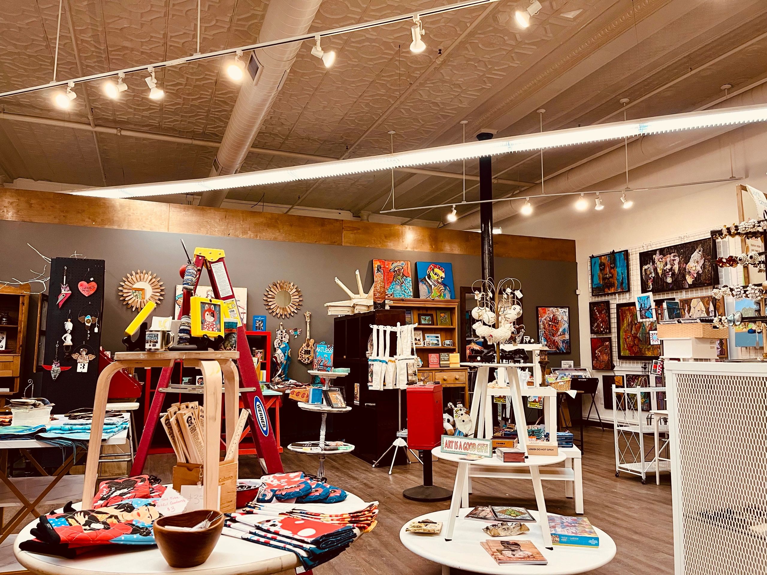 Artlandish is a vibrant art space that celebrates local and regional artists by showcasing fine art, funky creations, and artful gifts. Run by the artists themselves, this makers market fosters engagement between artists and patrons.